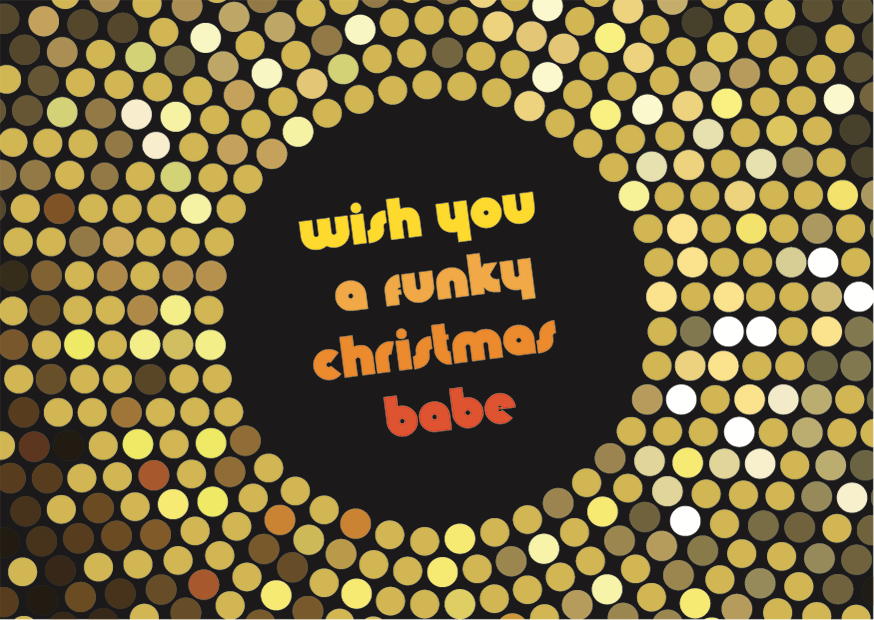 Eine kreative Weihnachtskarte mit goldenen und grünen Punkten, die einen funkigen Spruch präsentiert. Perfekt für die Feierlichkeiten der Saison.