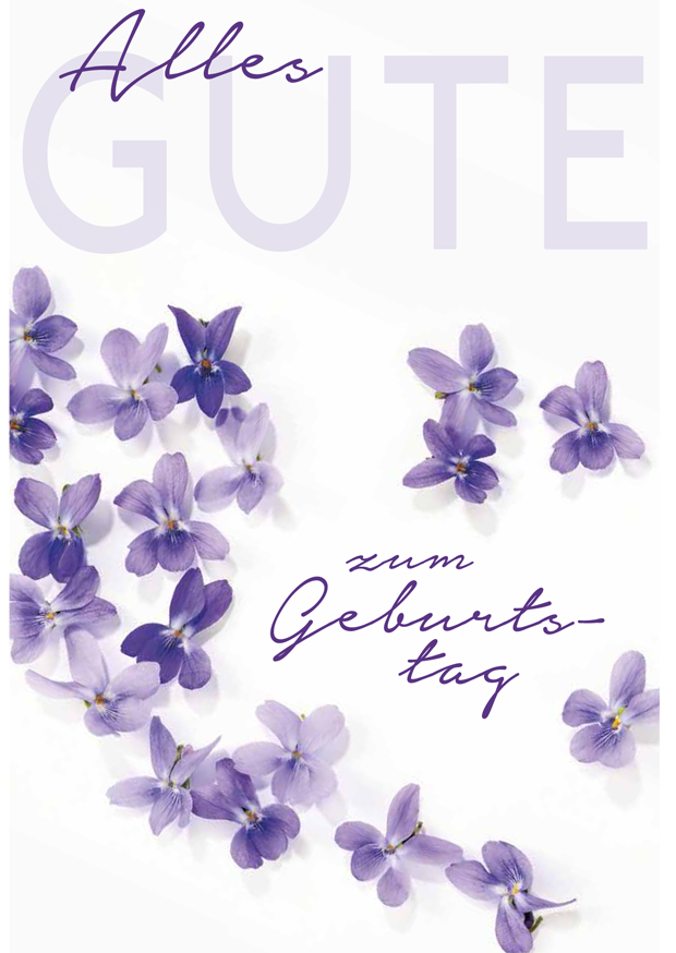 Eine festliche Karte zur Feier eines Geburtstags, geschmückt mit zarten lila Veilchen, die Glück und beste Wünsche symbolisieren. Ideal für jeden Geburtstag.
