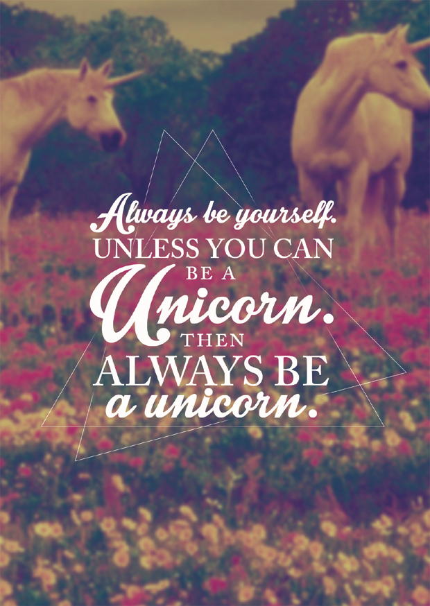 Zwei Einhörner stehen friedlich in einer blühenden Blumenwiese, während eine inspirierende Botschaft im Vordergrund erscheint. Die Szenerie vermittelt eine positive Stimmung.