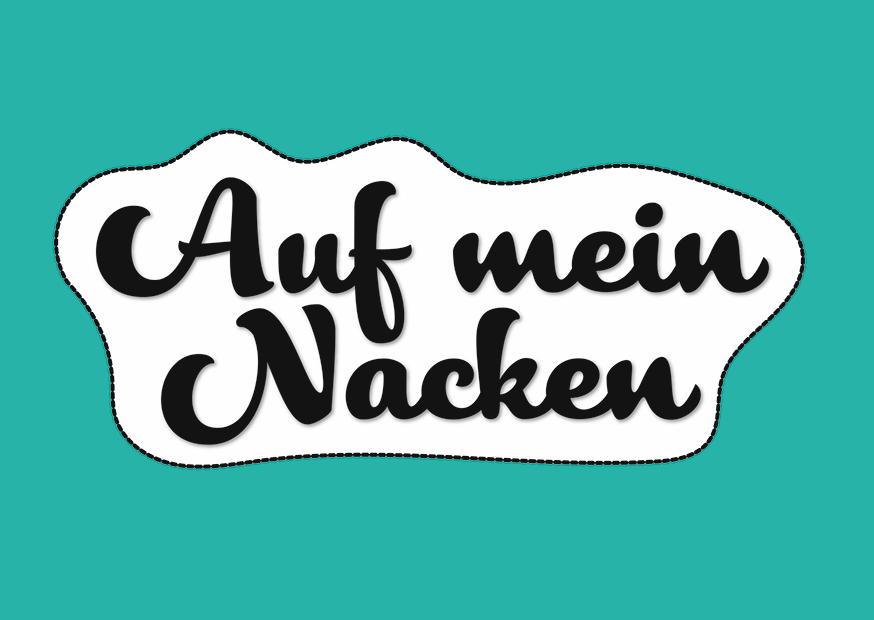 Das Kunstwerk zeigt den Ausdruck „Auf mein Nacken“ in stilvoller Schrift auf einem lebendigen, hellblauen Hintergrund. Perfekt für kreative Projekte und Drucke.