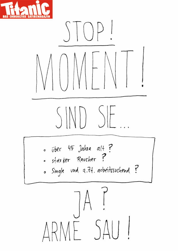 Eine humorvolle Annonce, die auf ironische Weise arbeitsuchende Menschen über 45 Jahre anspricht und auf deren Lebensumstände hinweist.