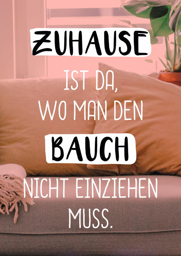 In einer gemütlichen Wohnsituation zeigt ein Kissen den Spruch über das Wohlbefinden zu Hause. Der Raum strahlt eine einladende und entspannte Stimmung aus.