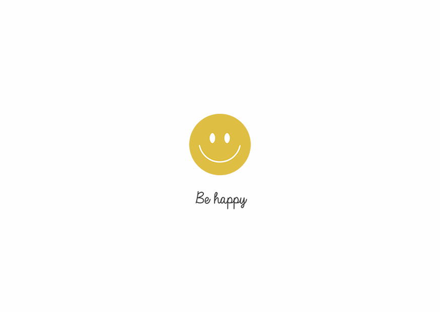 Ein gelbes Lächeln begleitet von der Botschaft, glücklich zu sein, strahlt Freude und Optimismus aus. Es ist eine Einladung zur positiven Denkweise im Alltag.