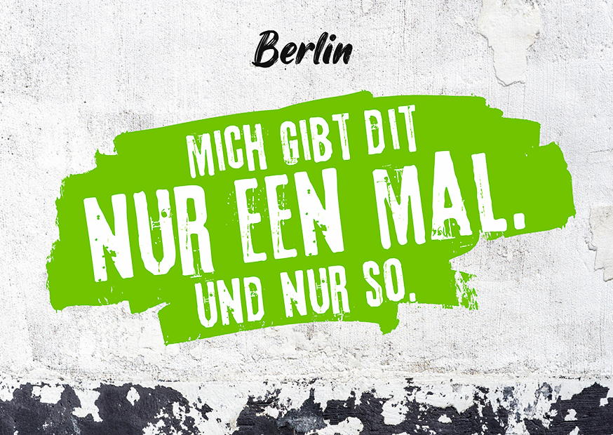 An einer grauen Wand in Berlin prangt eine bemerkenswerte, farbenfrohe Schrift, die eine besondere Botschaft verkündet und Passanten zum Nachdenken anregt.