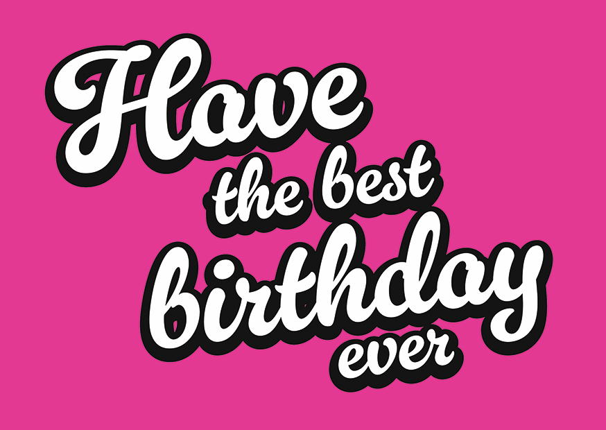 In einem lebhaften Design steht der Text Have the best birthday ever auf einem pinken Hintergrund. Perfekt für Geburtstagsfeiern und festliche Einladungen.