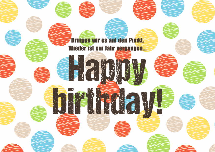 Bunte Kreise in verschiedenen Farben bilden einen festlichen Hintergrund. Im Mittelpunkt stehen Geburtstagsgrüße, die Freude und Feierlichkeit ausstrahlen.