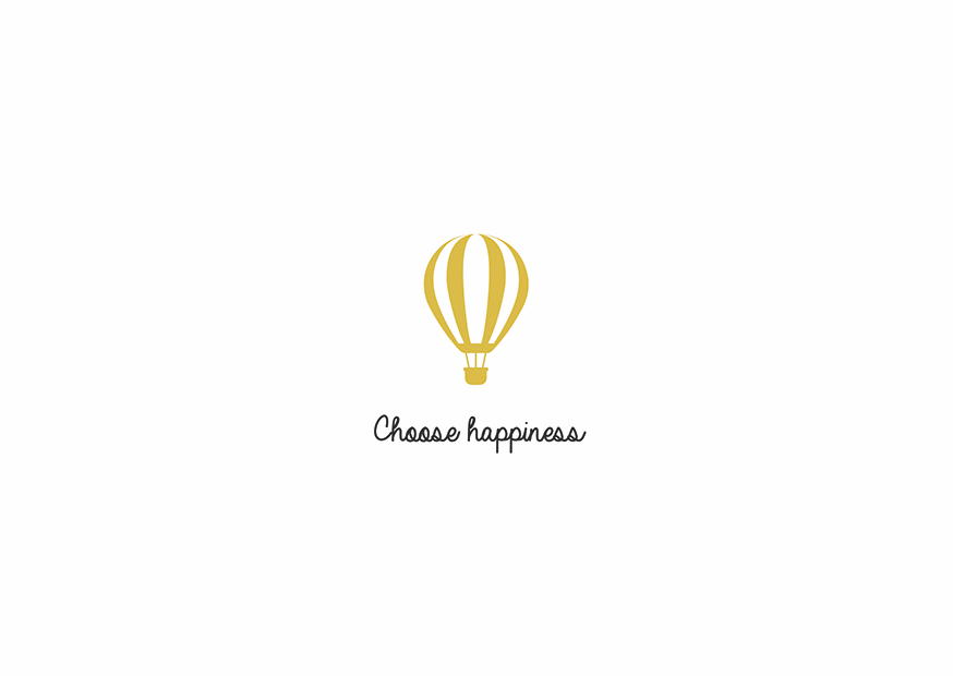 Ein gelbes Heißluftballon-Symbol steht für Freiheit und Lebensfreude. Die Botschaft Wähle Glück inspiriert zur positiven Einstellung und zum Streben nach Glück.
