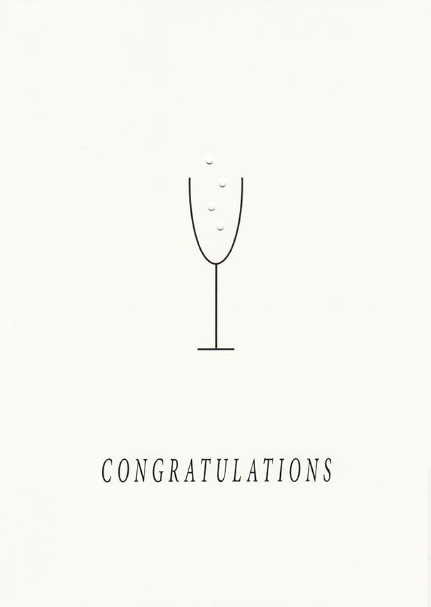 Diese elegante Karte zeigt ein schlichtes Sektglas und das Wort Congratulations in stilvoller Schrift. Ideal zum Feiern von Erfolgen oder besonderen Momenten im Leben.