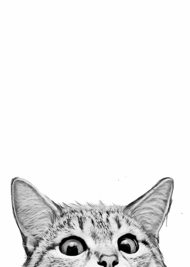 Eine süße Katze mit großen Augen blickt neugierig über einen Tisch. Das Licht der Sonne beleuchtet den Raum und schafft eine freundliche Atmosphäre.