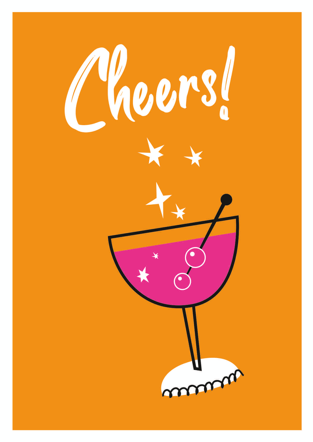 Ein fröhlicher Cocktail in einer stilisierten Glas mit pinkem Inhalt, Blasen und funkelnden Sternen. Perfekt für eine Feier oder einen entspannten Abend.