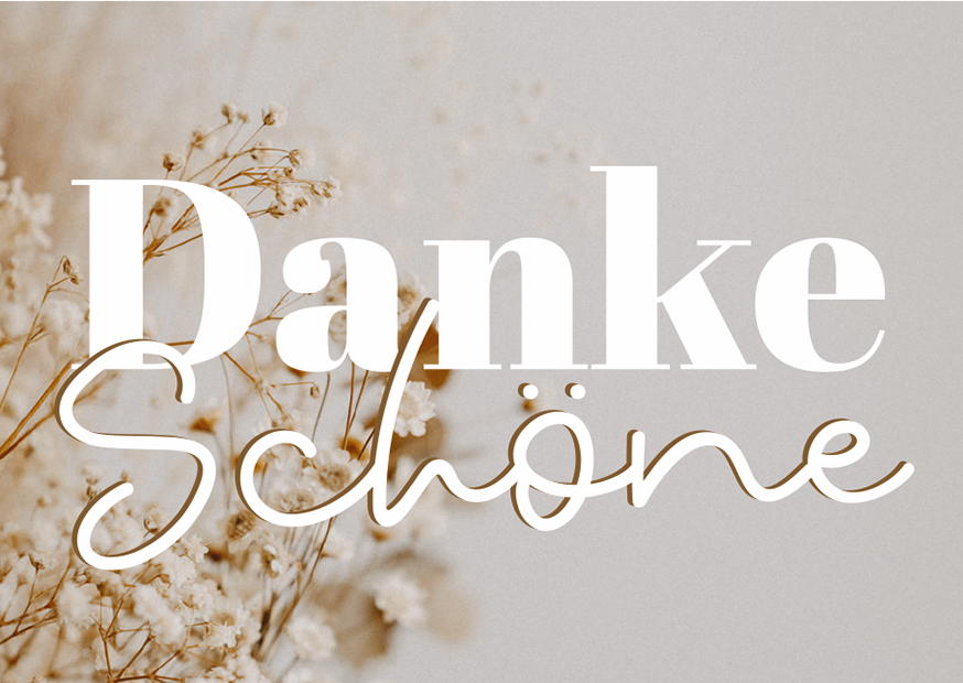 Der Schriftzug Danke Schön wird dekorativ präsentiert, um Wertschätzung auszudrücken. Ideal für Hochzeiten, Geburtstagsfeiern oder andere Feierlichkeiten.