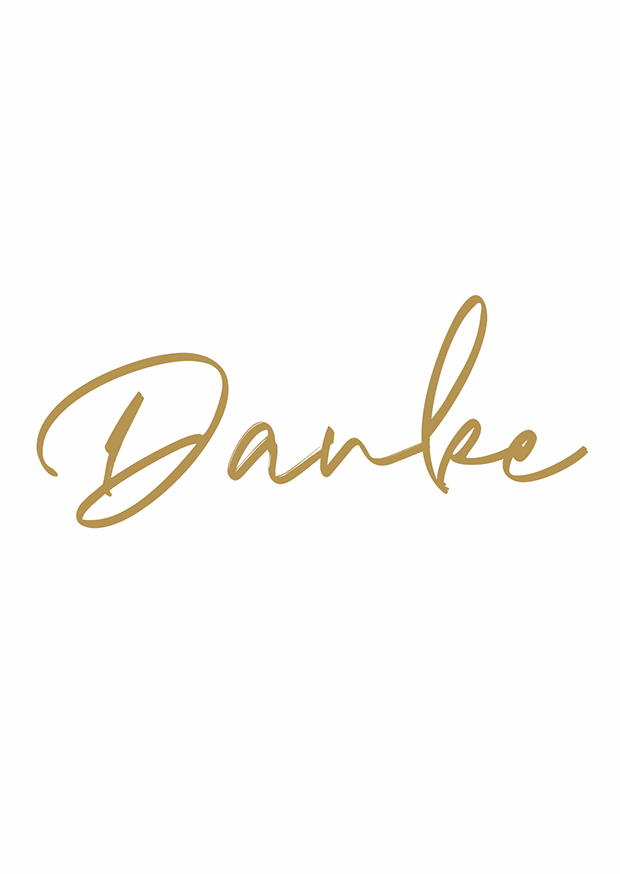 Die stilvolle Danksagung in goldener Schrift bringt Wertschätzung zum Ausdruck und eignet sich hervorragend für besondere Anlässe wie Hochzeiten und Feiern.