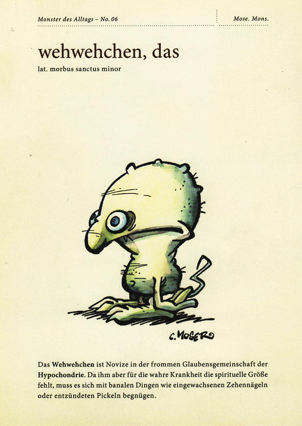 Das Wehwehchen wird als skurriles, kleines Wesen dargestellt, das die Befindlichkeiten von Hypochondern symbolisiert. Es wirkt sorgenvoll und komisch zugleich.
