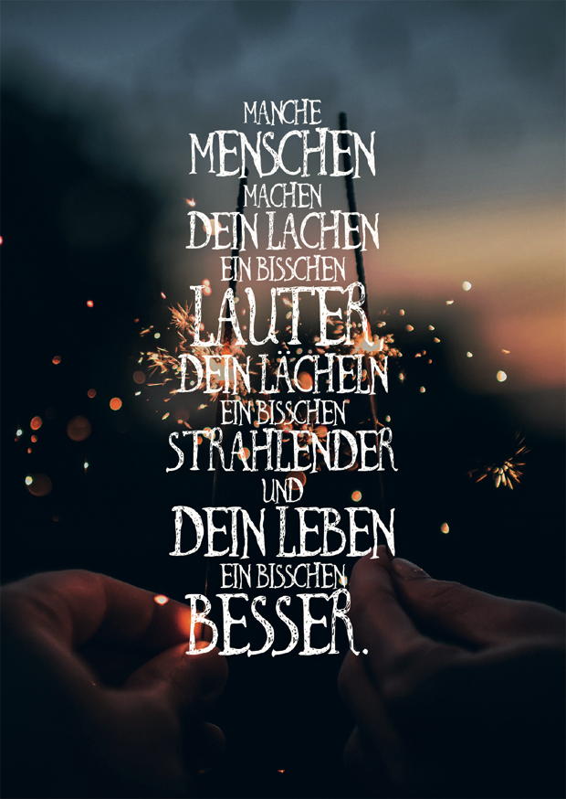 Es wird ein schöner Moment festgehalten, der eine inspirierende Botschaft über das Lachen und das Leben vermittelt. Die Silhouette von Händen, die Funken erzeugen, verstärkt die positive Atmosphäre.