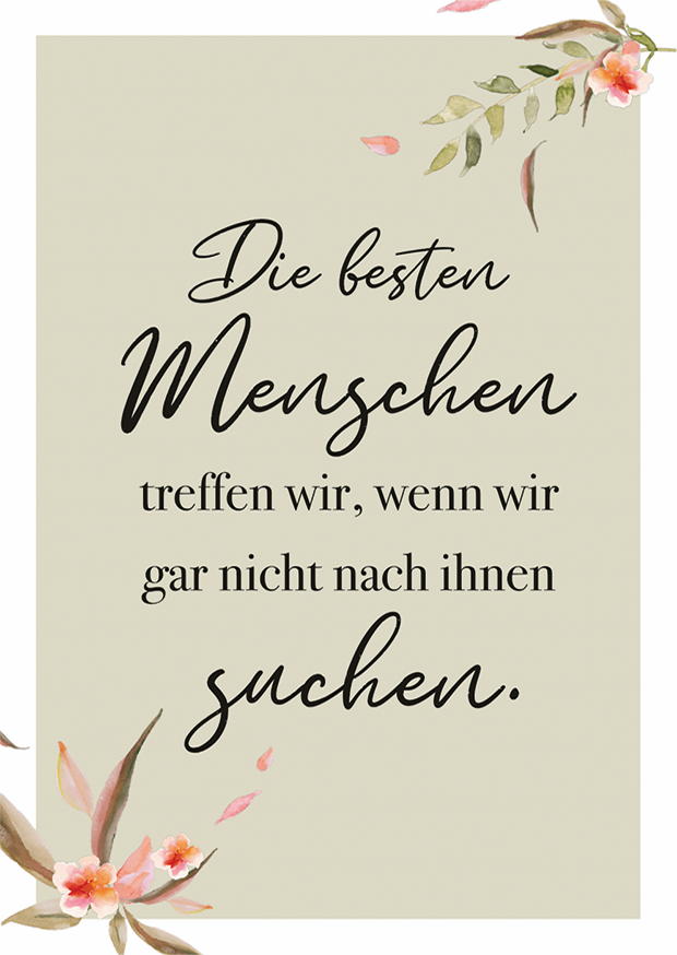 In einem hellen Hintergrund stehen inspirierende Worte geschrieben, umgeben von zarten floralen Verzierungen, die positive Gedanken anregen und ermutigen.