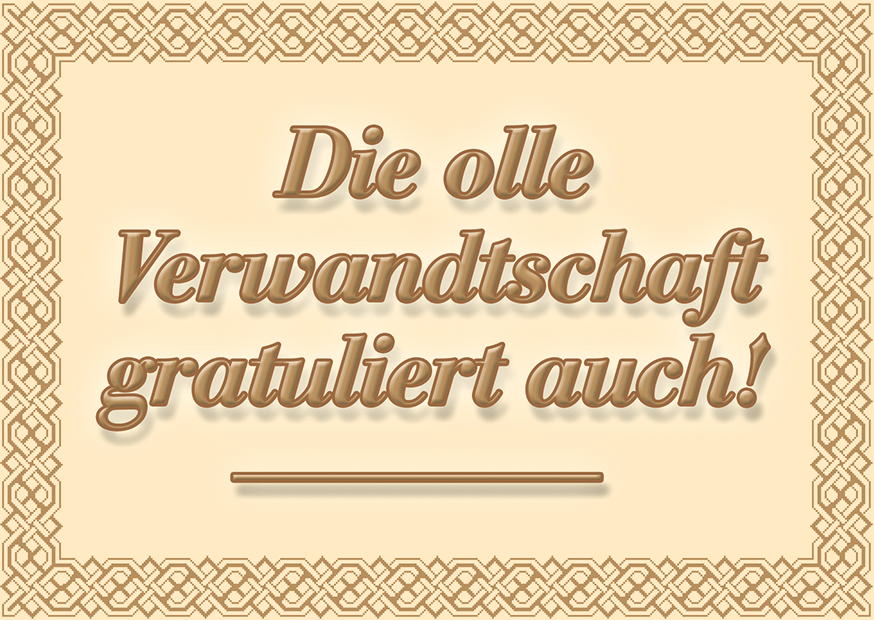 Bei einer festlichen Gelegenheit wird auf kreative Weise zur Familienfeier gratuliert, illustriert durch einen nostalgischen Schriftzug in sanften Farben.