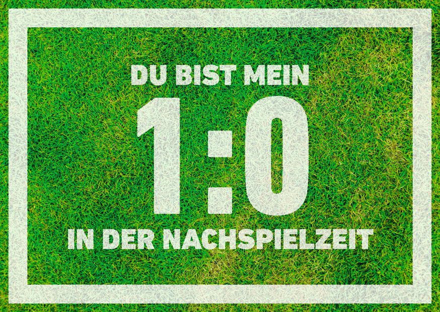 Ein großes Transparent auf einem grünen Fußballfeld zeigt die Botschaft „Du bist mein 1:0“ in der Nachspielzeit, die für Emotionen und Überraschungen sorgt.