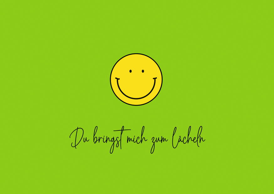 Ein leuchtend grüner Hintergrund wird von einem großen Smiley und einer herzlichen Botschaft begleitet, die Freude und positive Emotionen vermittelt.