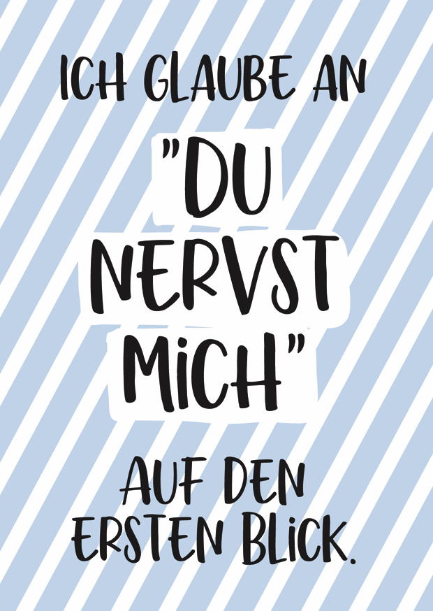 Ein einprägsames Zitat auf einem blauen gestreiften Hintergrund ermutigt dazu, an die Magie der ersten Momente zu glauben, selbst wenn man genervt wird.