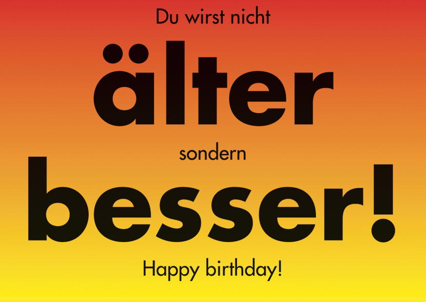 Das Schild feiert einen Geburtstag und trägt die Botschaft, dass man nicht älter, sondern besser wird. Es ist in leuchtenden Farben gestaltet und inspirierend für Geburtstagsgäste.