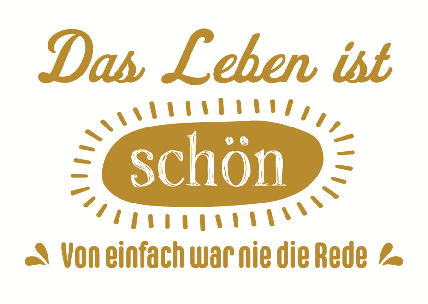 Ein schöner Spruch, der die Freude am Leben feiert und betont, dass es nicht um Einfachheit geht. Die Schrift ist künstlerisch gestaltet und zieht die Aufmerksamkeit auf sich.