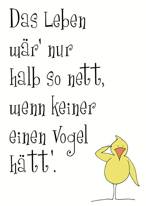 Dieses inspirierende Zitat thematisiert die Bedeutung von Freundschaft und Freude. Ein kleiner gelber Vogel scheint das Leben aufzuhellen und lächelt dabei.