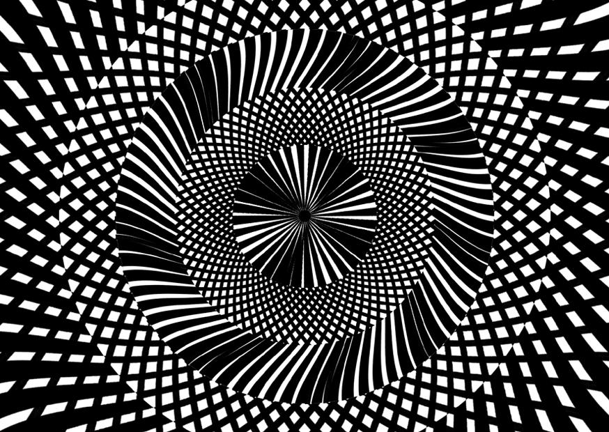 In einem hypnotisierenden Muster treffen sich starke Linien und spiralförmige Formen.