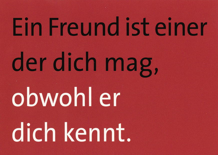 Auf einem kräftig roten Hintergrund steht ein bedeutungsvolles Zitat über Freundschaft, das die ehrliche Natur wahrer Freunde betont und zum Nachdenken anregt.