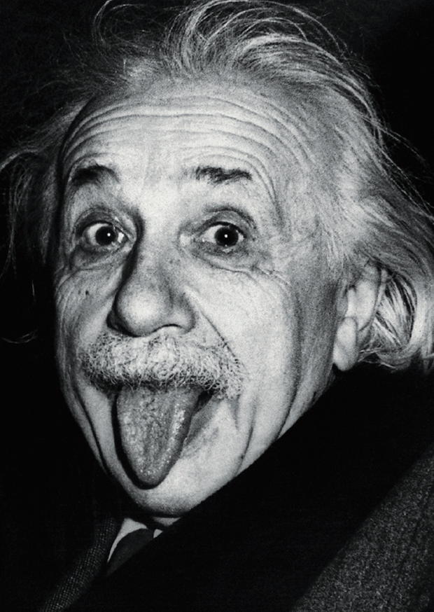 In den 1950er Jahren ist Albert Einstein zu sehen, wie er seine Zunge herausstreckt und dabei mit Humor unbeschwert posiert. Der Wissenschaftler zeigt seine charmante Seite.