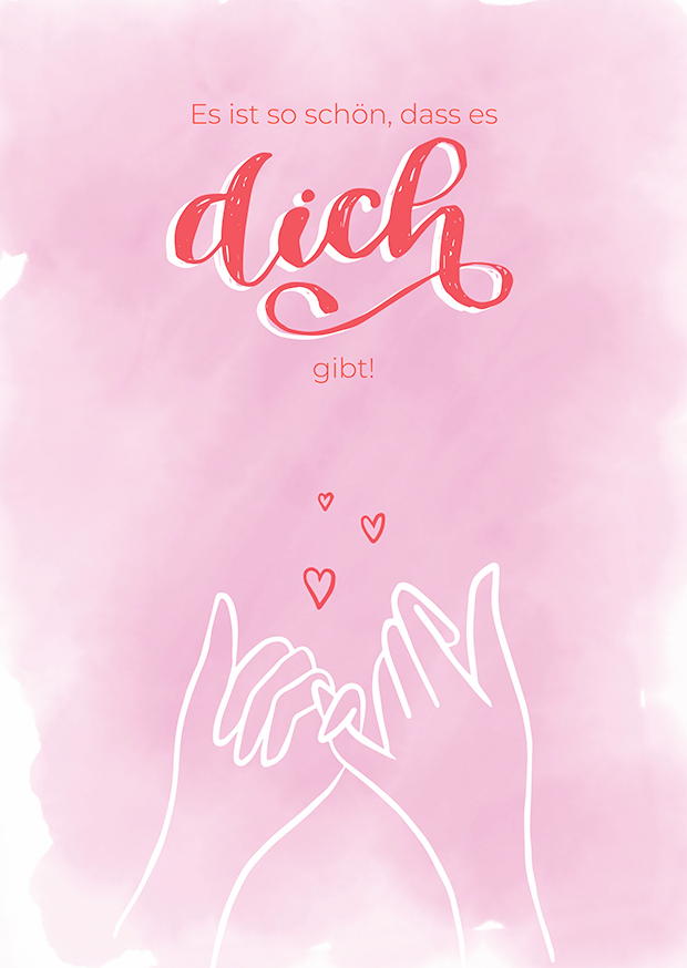 Diese kreative Darstellung zeigt zwei Hände, die zärtlich zueinander gehalten werden, umgeben von roten Herzen, und vermittelt eine Botschaft der Wertschätzung.