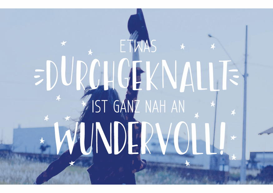 Unter einem strahlend blauen Himmel tanzt eine Person voller Energie und Freude. Der Wind weht und der Hut wird hoch in die Luft geworfen, was die Lebhaftigkeit des Moments unterstreicht.