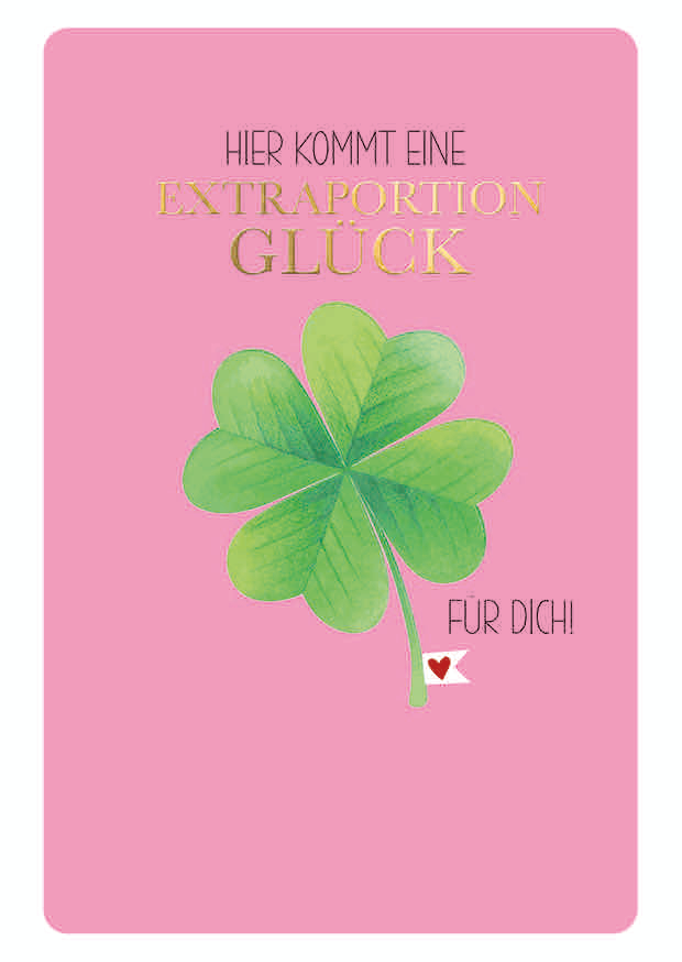 Eine kreative Karte zeigt einen vierblättrigen Klee und die Botschaft für Glück. Sie eignet sich perfekt, um jemandem Freude zu bereiten und Wünsche zu übermitteln.