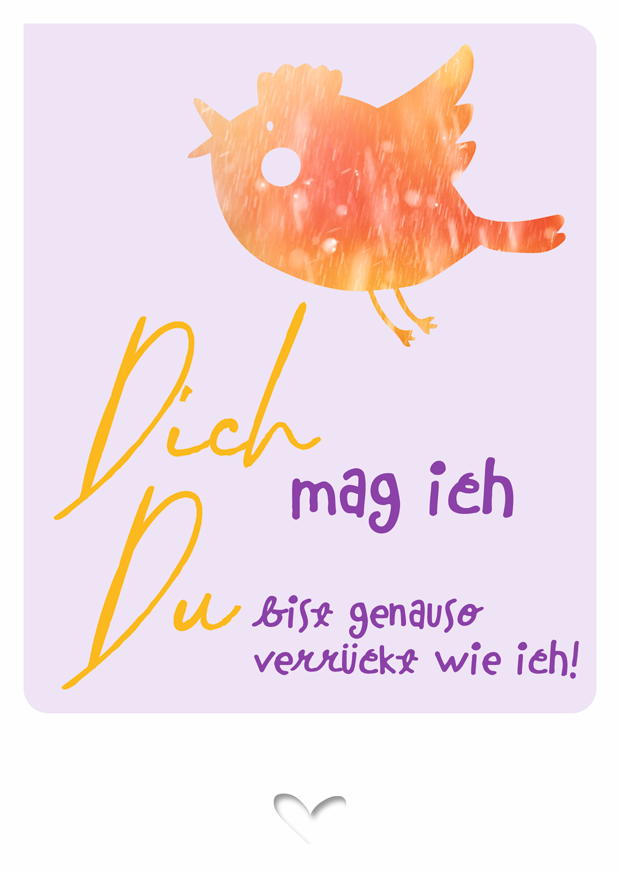 Ein leuchtend gestalteter Spruch mit einem Vogel zeigt eine herzliche Botschaft über die Freude an der Freundschaft und der Verrücktheit im Leben, ideal für eine kreative Dekoration.