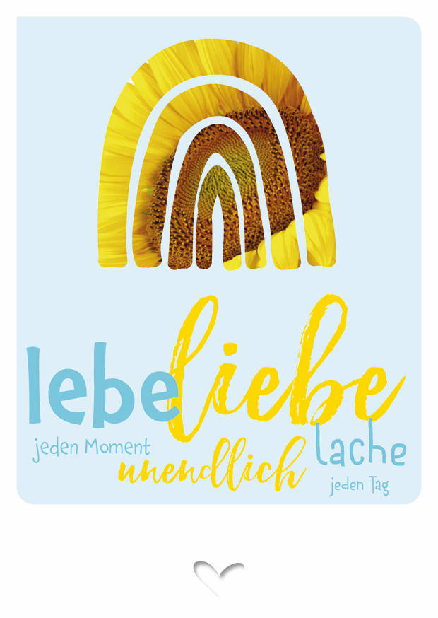 In dieser bunten Gestaltung wird eine inspirierende Botschaft vermittelt. Die Kombination aus Sonnenblumen und Regenbogen bringt Freude und positive Energie in den Alltag.