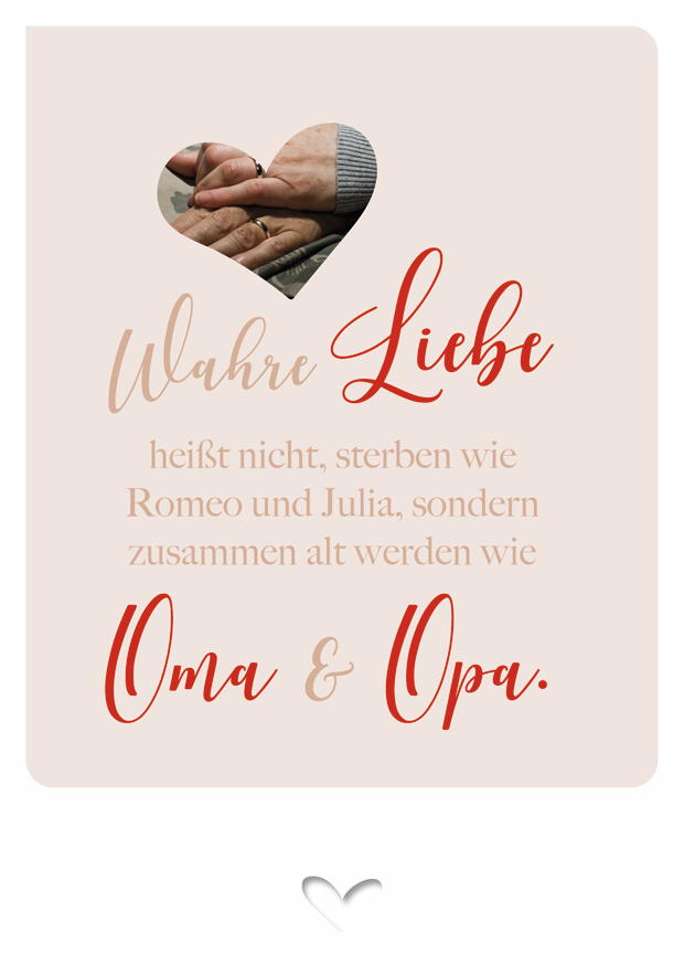 Die vereinten Hände von Großeltern drücken wahre Liebe aus, begleitet von einem Zitat, das die Beständigkeit der Zuneigung im Alter betont. Ein Zeichen ewiger Verbundenheit.