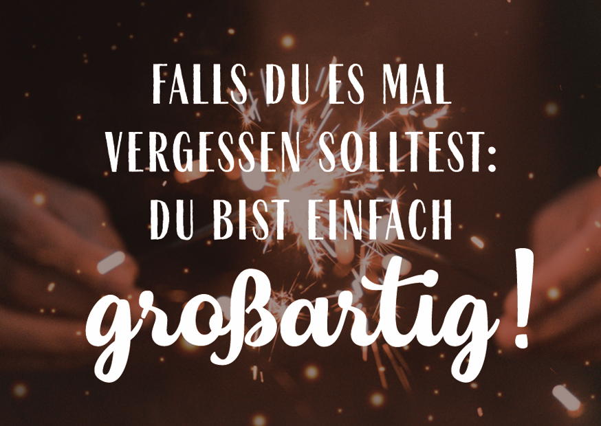 Ein inspirierendes Zitat erinnert daran, wie großartig jeder ist, während im Hintergrund eine festliche Atmosphäre mit funkelndem Feuerwerk entsteht, ideal für besondere Anlässe.