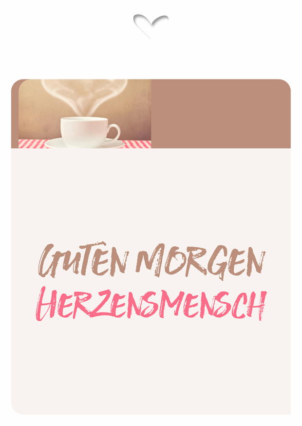 Eine Tasse Kaffee mit aufsteigendem Dampf steht im Vordergrund, während der Text „Guten Morgen Herzensmensch“ den Tag freundlich begrüßt.
