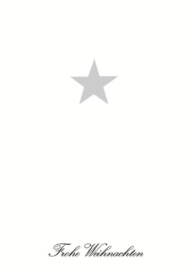 Eine minimalistische Weihnachtskarte mit einem grauen Stern in der Mitte und dem Text „Frohe Weihnachten“ am unteren Rand. Ideal für Weihnachtsgrüße.