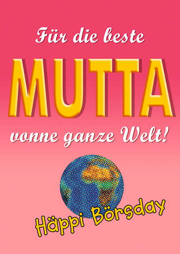 Eine farbenfrohe Geburtstagskarte wünscht der besten Mutter der Welt alles Gute. Mit einem Erdball und fröhlichen Farben wird die Botschaft unterstrichen.