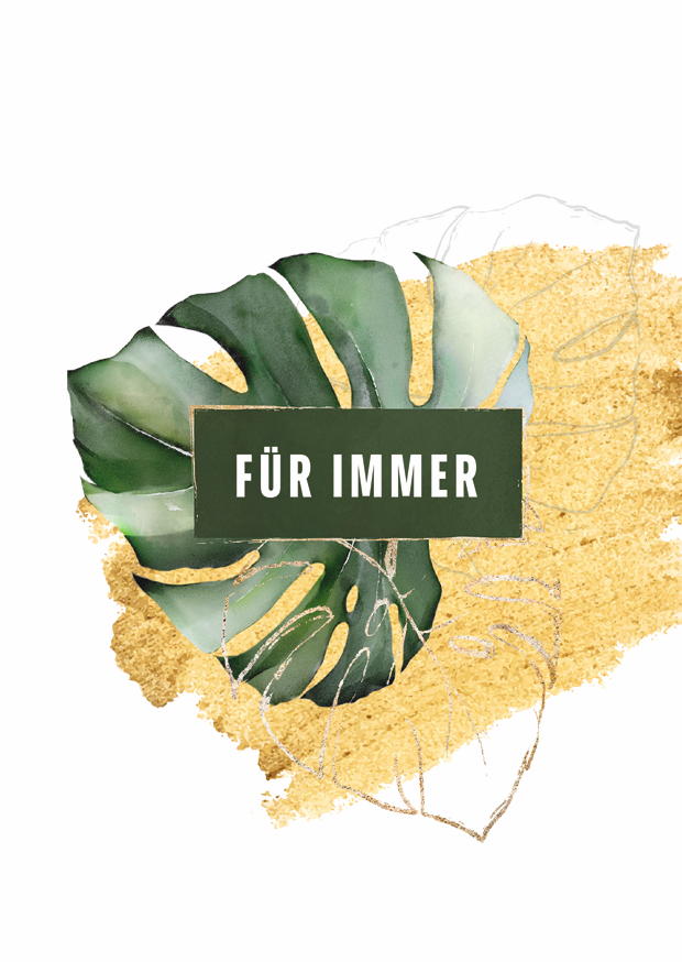 Ein dekoratives Blatt mit goldenen Hintergründen und dem Schriftzug für immer verleiht dem Raum einen modernen und eleganten Touch. Ideal für verschiedene Anlässe.