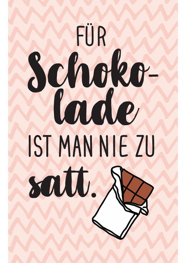 Das Plakat präsentiert eine humorvolle Aussage über Schokolade, umgeben von einem stilvollen Hintergrund in sanften Ziegenfarben. Es spricht die Liebe zur Schokolade an.