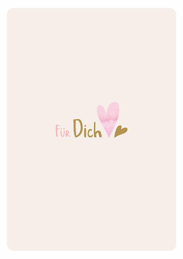 Eine herzliche Nachricht, die mit sanften Farben gestaltet ist. Die Schriftzüge Für Dich und zwei Herzen verleihen der Gestaltung eine persönliche Note und Freude.