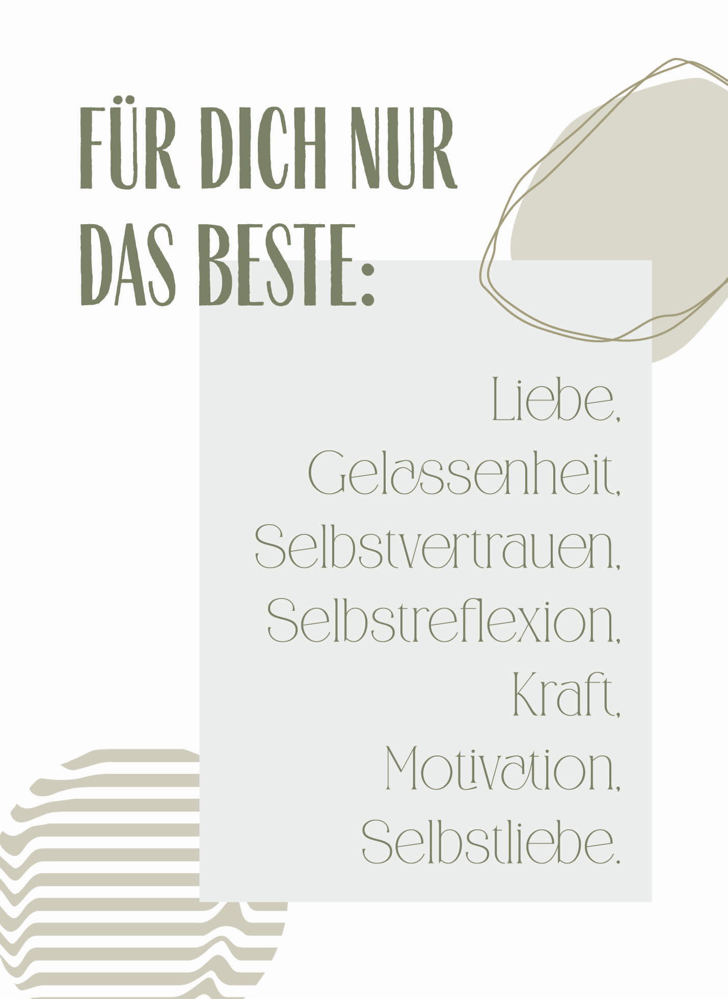 Eine kreative Darstellung positiver Werte, die Selbstvertrauen, Gelassenheit und Motivation fördern. Die minimalistischen Formen und Farben schaffen eine beruhigende Atmosphäre.