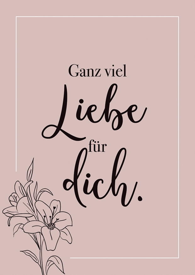 Eine wunderschöne Grußkarte zeigt den inspirierenden Spruch Ganz viel Liebe für dich umgeben von schlichten, floralen Motiven. Perfekt für besondere Anlässe.