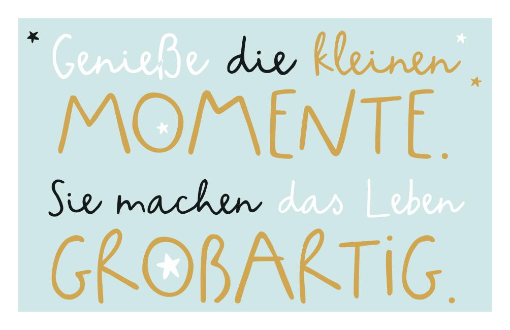 Ein inspirierendes Zitat auf blauem Grund ermutigt dazu, die kleinen, bedeutenden Augenblicke im Leben wertzuschätzen und zu feiern.