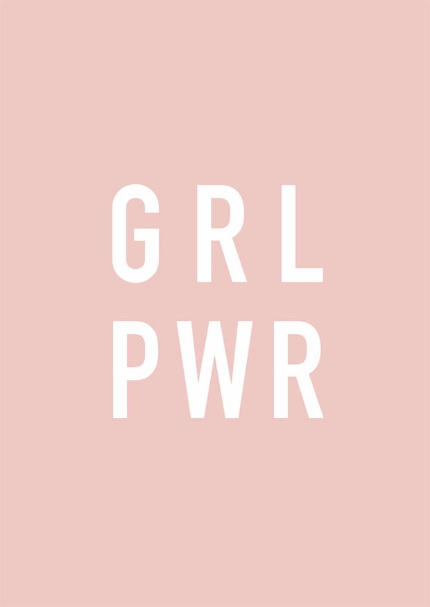 Der Schriftzug GRL PWR auf einem sanften rosa Hintergrund vermittelt Stärke und Empowerment für Frauen. Perfekt geeignet für kreative Projekte und Wanddekoration.