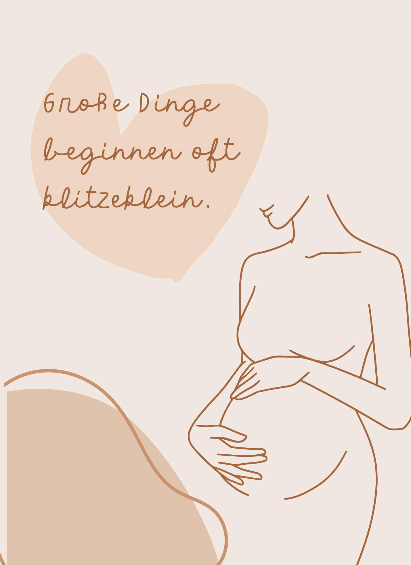 Eine schwangere Frau steht entspannt und hält ihren Bauch. Der Hintergrund ist in sanften, neutralen Farben gehalten, was eine ruhige Atmosphäre vermittelt.