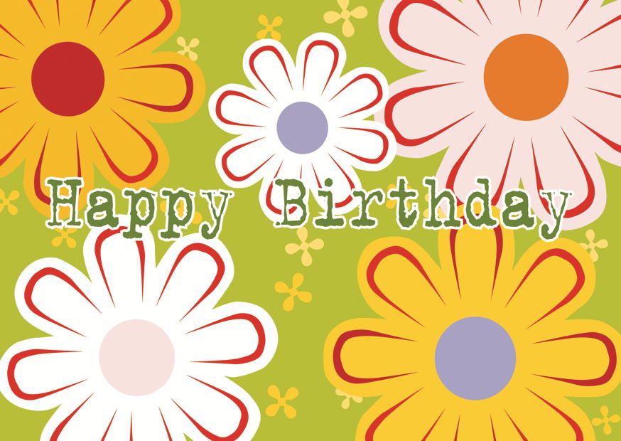 Diese kreative Geburtstagskarte zeigt leuchtende Blumen in verschiedenen Farben auf einem grünen Hintergrund, ergänzt durch den Schriftzug 'Happy Birthday', ideal für Geburtstagswünsche.