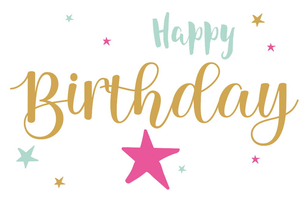 Ein festlicher Geburtstagsgruß mit goldenen und pastellfarbenen Sternen sowie dem fröhlichen Schriftzug Happy Birthday. Perfekt für eine Feier.