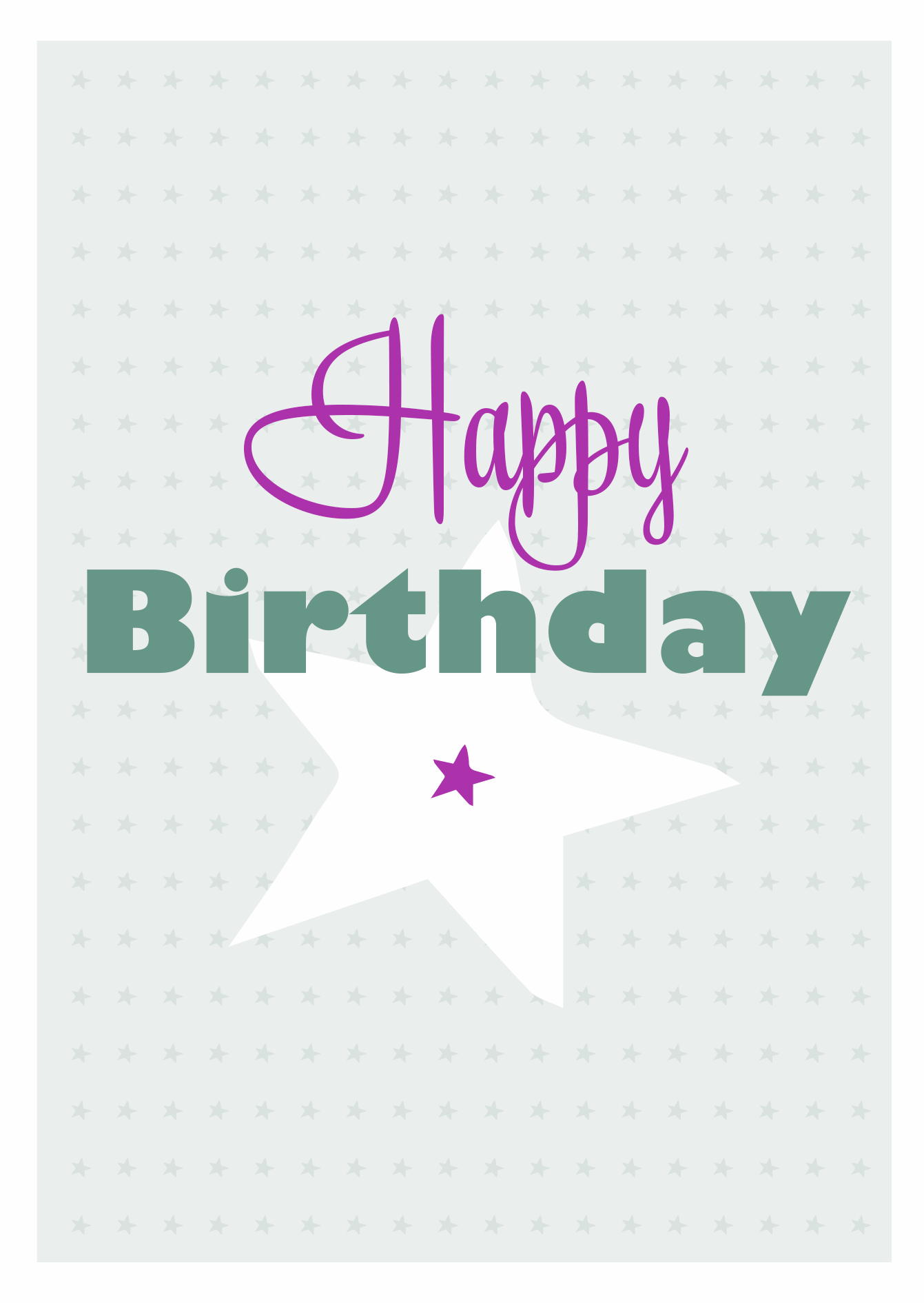 Die Karte zeigt fröhliche Geburtstagswünsche in leuchtenden Farben, umgeben von einem Sternenmotiv. Perfekt für persönliche Nachrichten und Feierlichkeiten.
